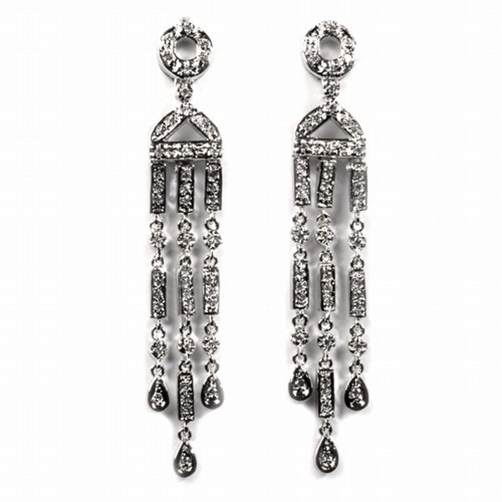 Sterling Silver Chandelier Dangle Teardrop Elegant Ornate Earrings Clear CZ 925