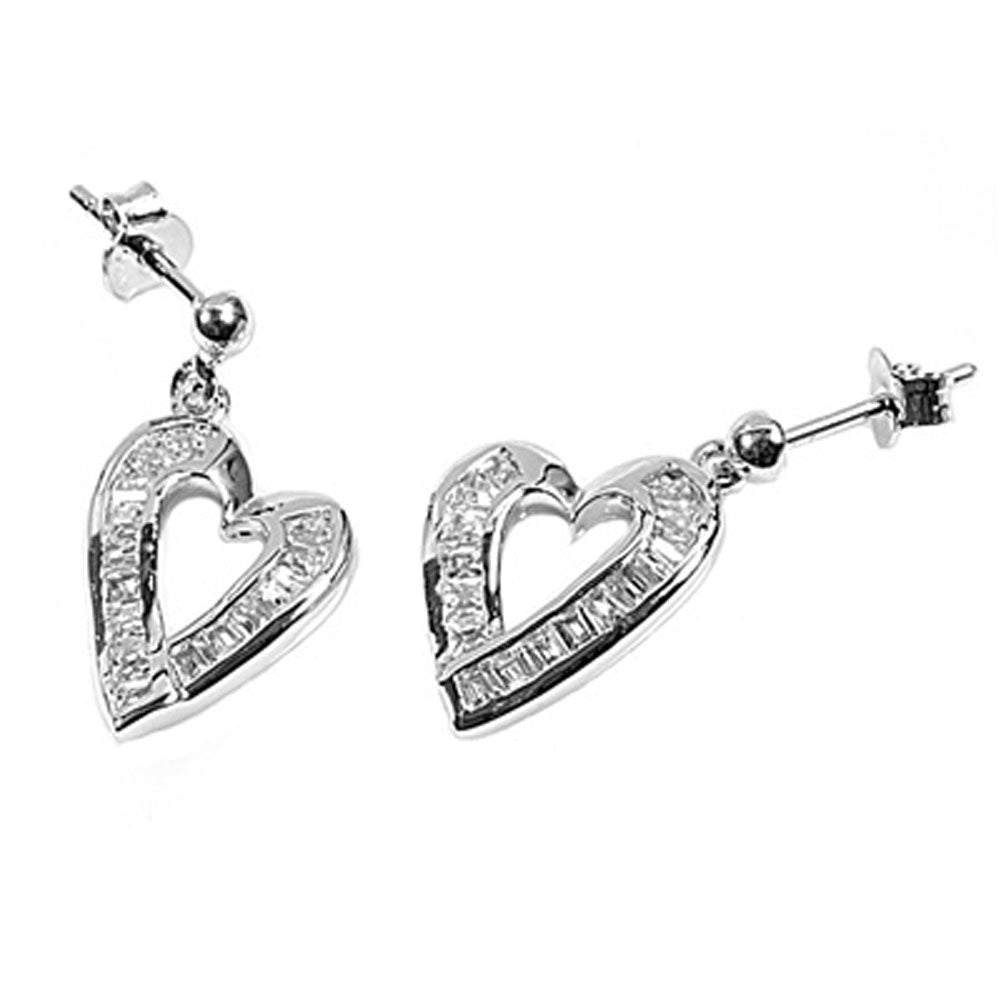 Heart Earrings Clear Simulated CZ .925 Sterling Silver