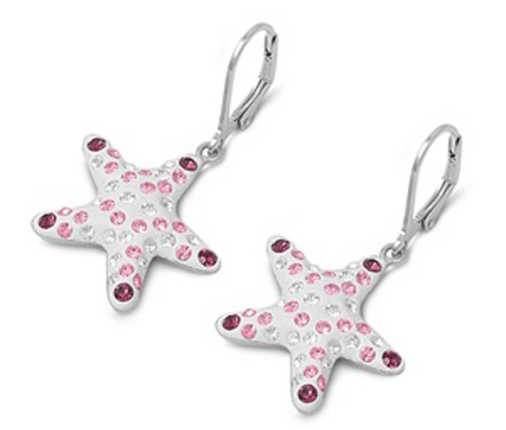 Mosaic Starfish Earrings Simulated Amethyst Pink Simulated CZ .925 Sterling Silver