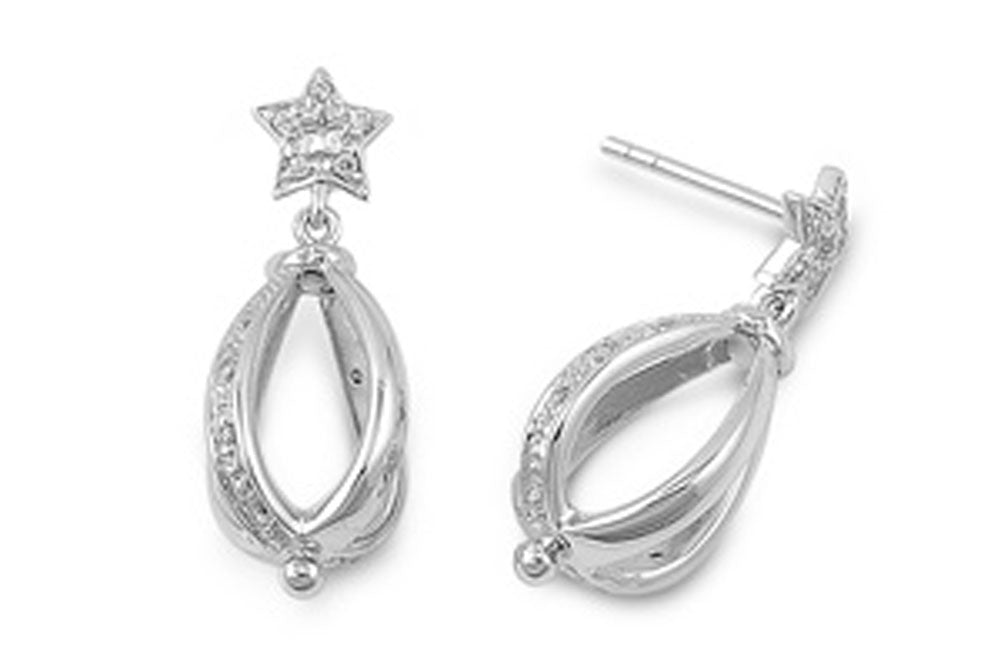 Star Hanging Earrings Clear Simulated CZ .925 Sterling Silver