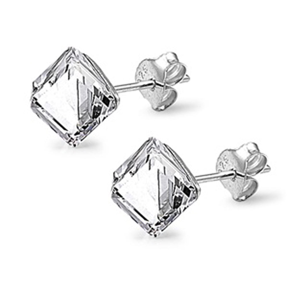 Sterling Silver Simple Cube Classic Traditional Geometric Earrings Clear CZ 925