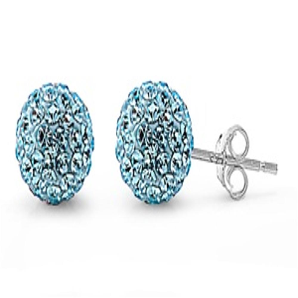 Sterling Silver Beautiful Aquamarine Rhinestone Studded Ball Earrings 925 New