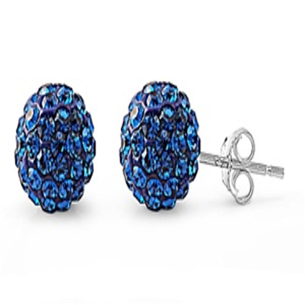 Sterling Silver Wholesale Blue Rhinestone Studded Ball Earrings 925 New