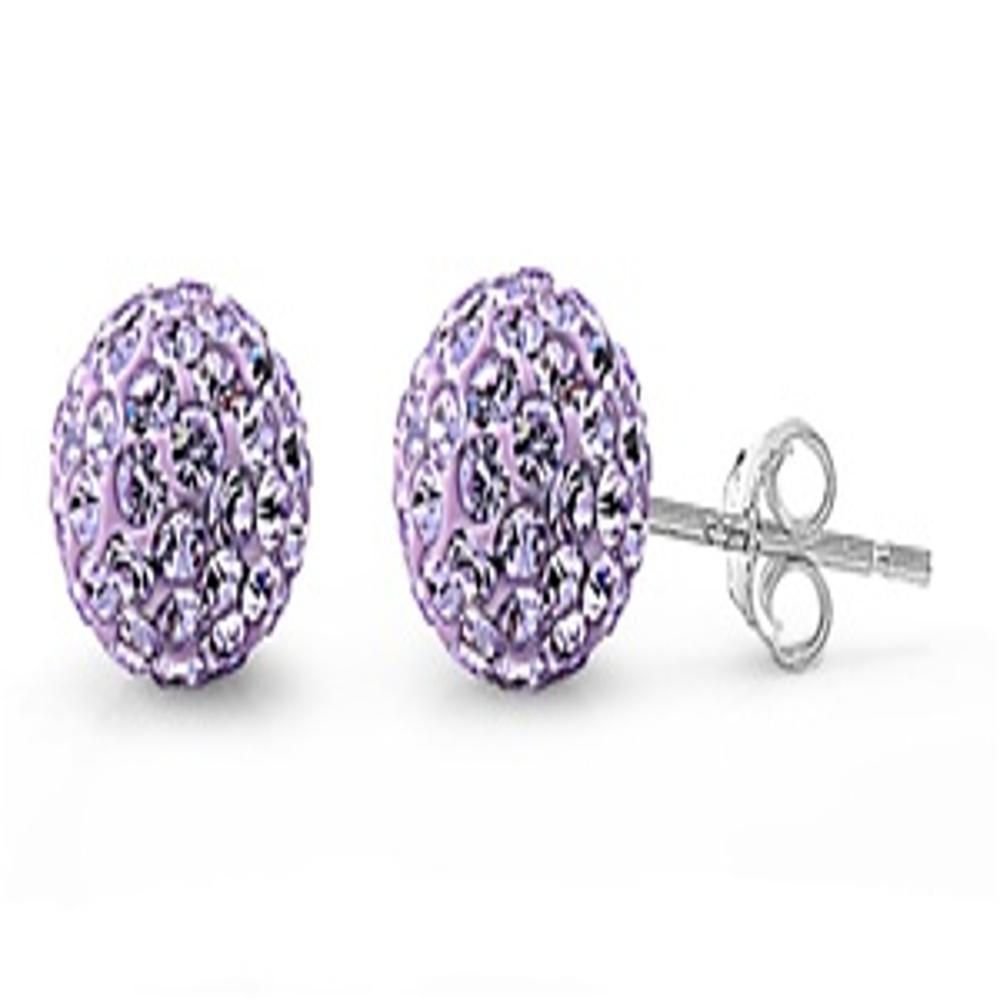 Sterling Silver Wholesale Lavender Rhinestone Studded Ball Earrings 925 New