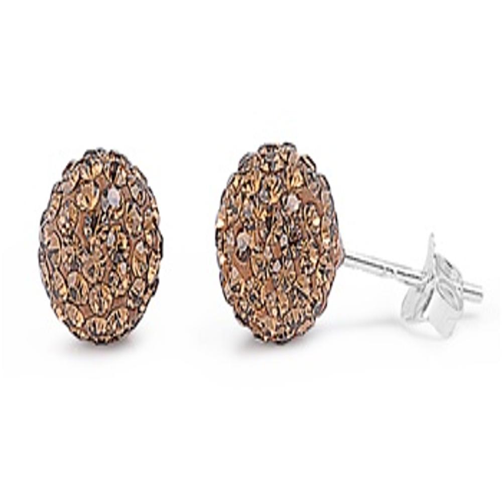 Sterling Silver Classic Smoky Rhinestone Ball Sphere Earrings 925 New