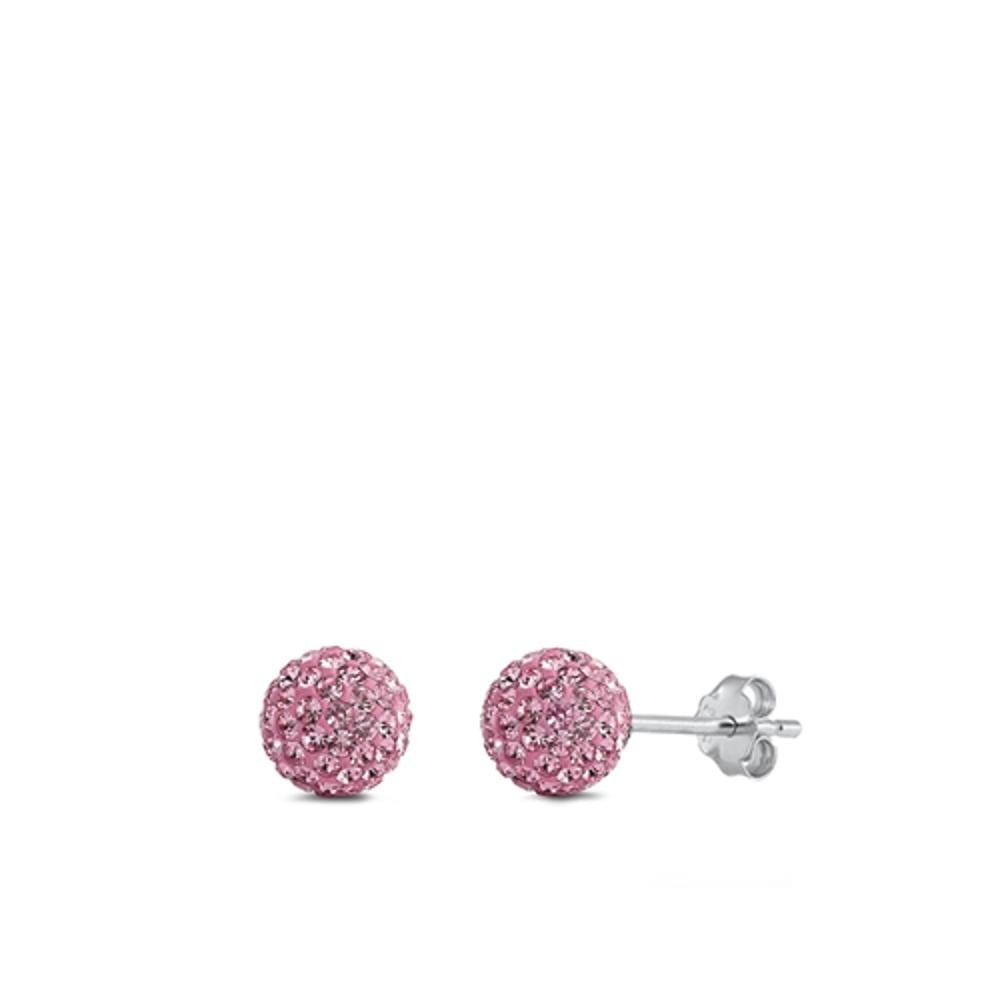 Sterling Silver High Polish Fashion Pink Rhinestone Ball Sphere Earrings 925 New