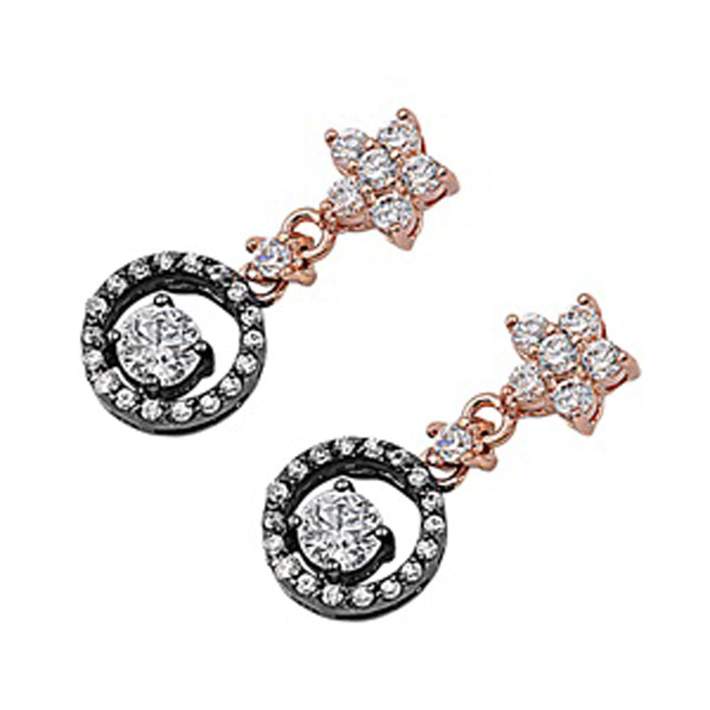 Round Star Hanging Earrings Clear Simulated CZ .925 Sterling Silver