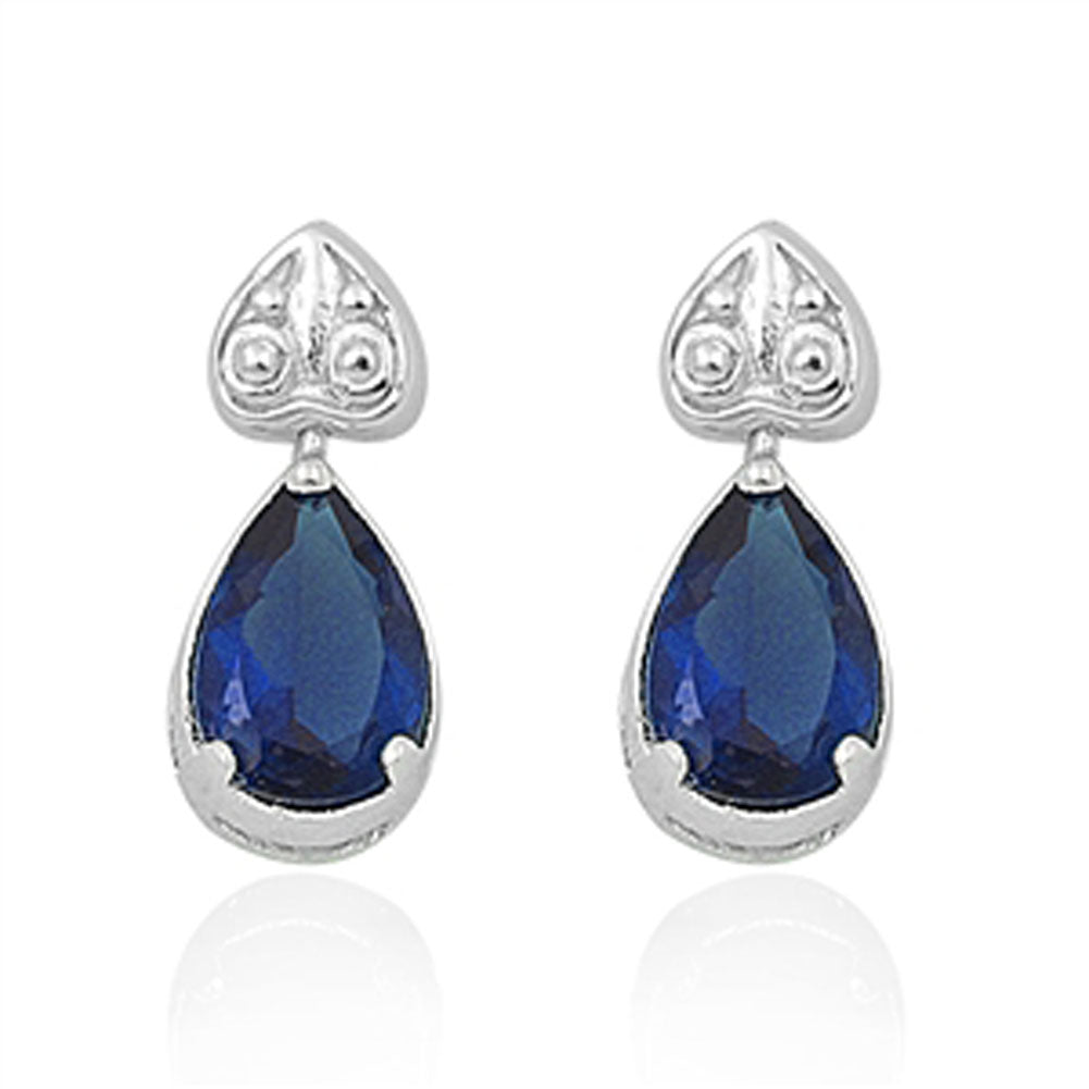 Heart Teardrop Earrings Blue Simulated Sapphire .925 Sterling Silver