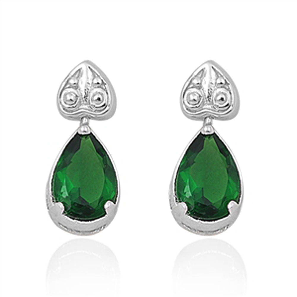 Heart Teardrop Earrings Simulated Emerald .925 Sterling Silver