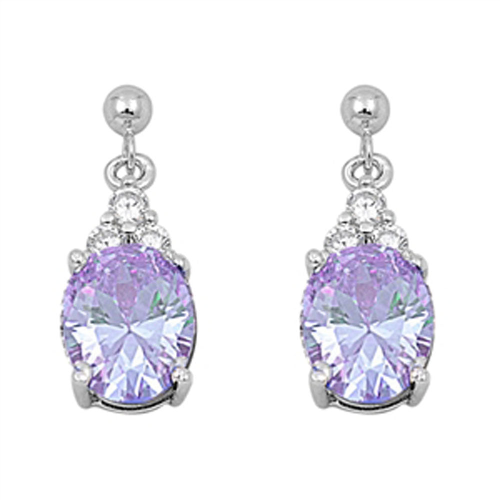 Oval Earrings Simulated Lavender Clear Simulated CZ .925 Sterling Silver