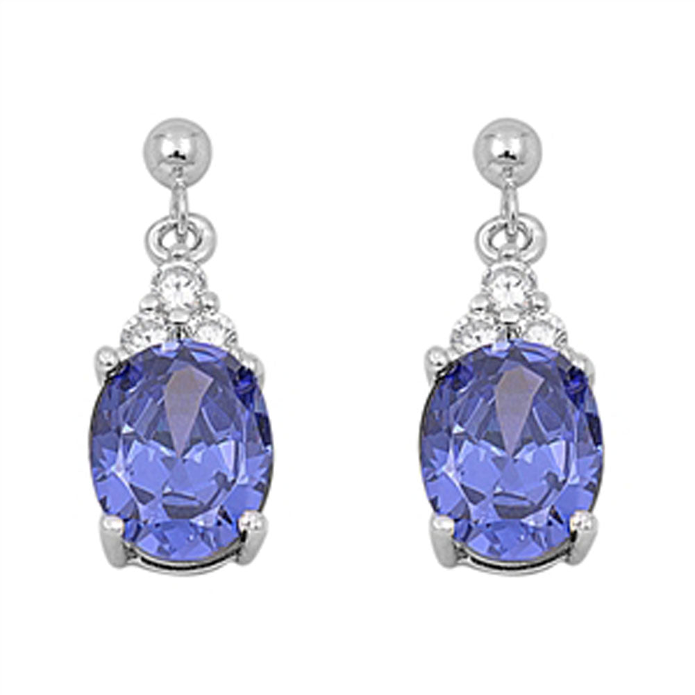 Oval Earrings Simulated Tanzanite Clear Simulated CZ .925 Sterling Silver