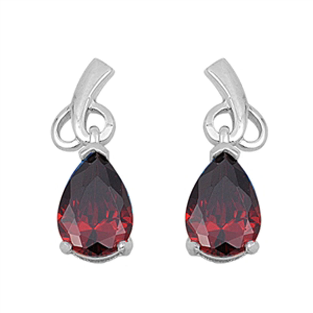 Teardrop Earrings Simulated Garnet .925 Sterling Silver