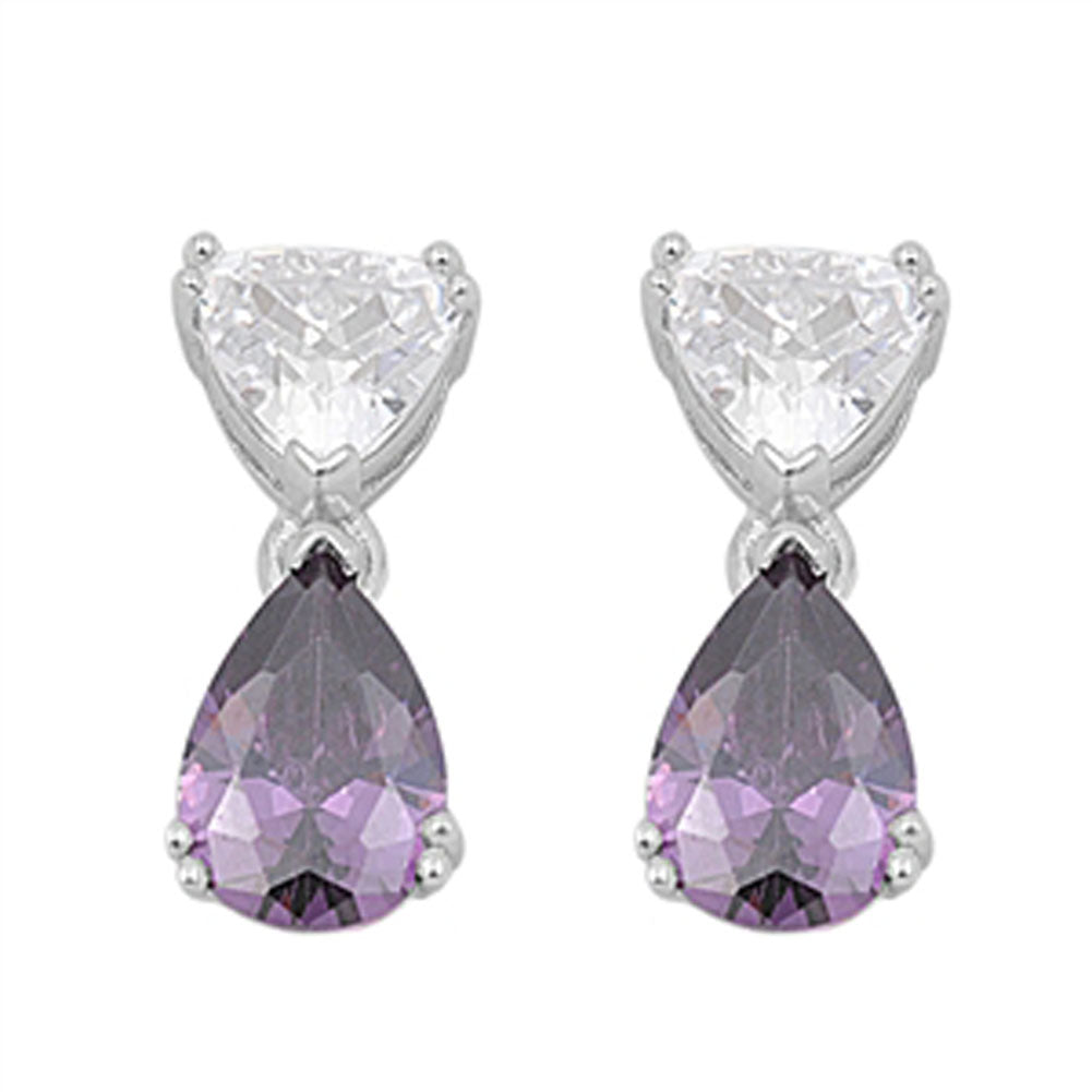 Teardrop Earrings Simulated Amethyst Clear Simulated CZ .925 Sterling Silver