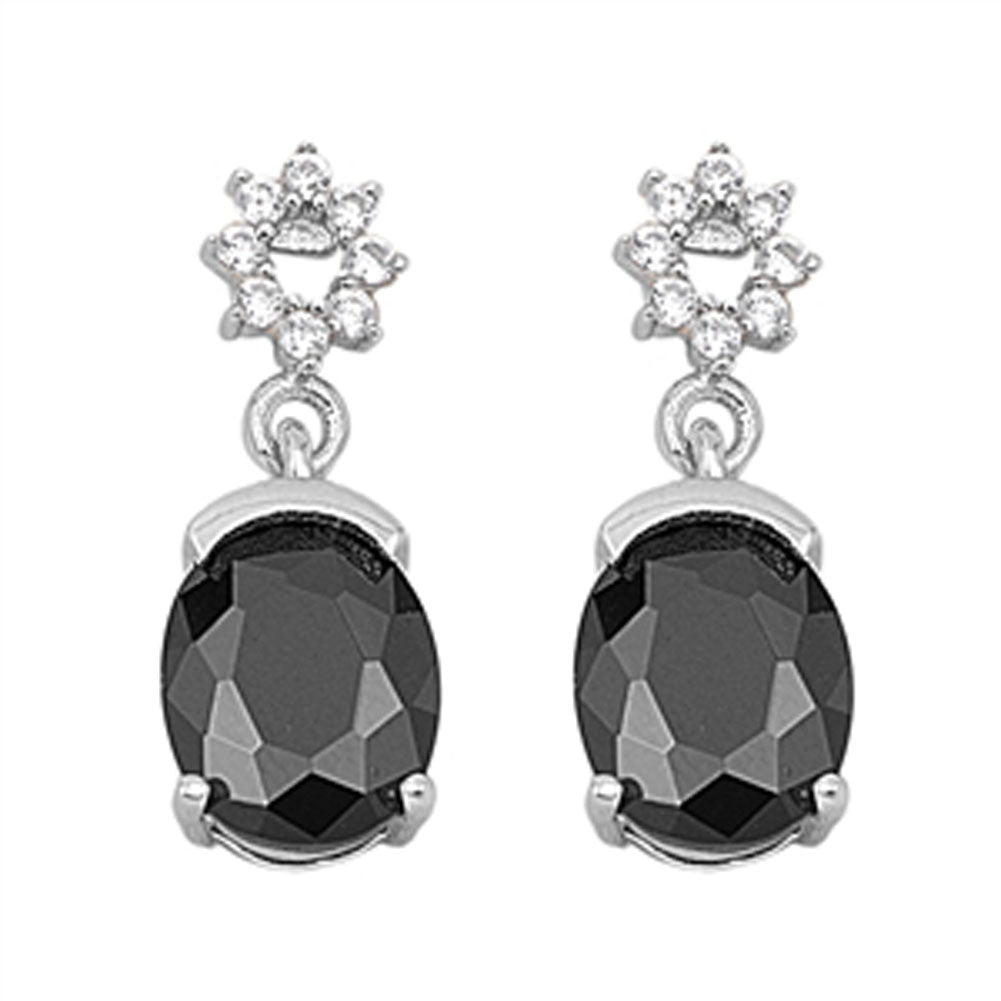 Oval Hanging Earrings Black Simulated CZ Clear Simulated CZ .925 Sterling Silver