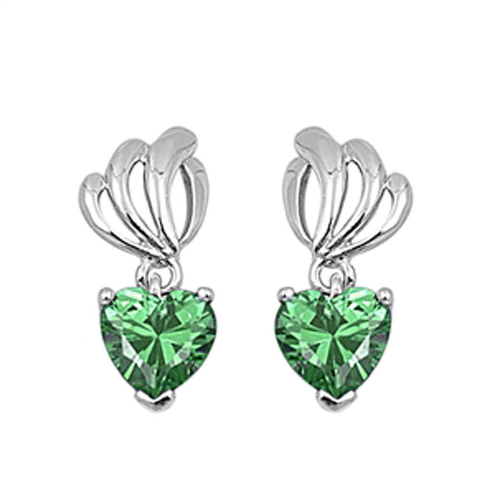Heart Hanging Earrings Simulated Emerald .925 Sterling Silver
