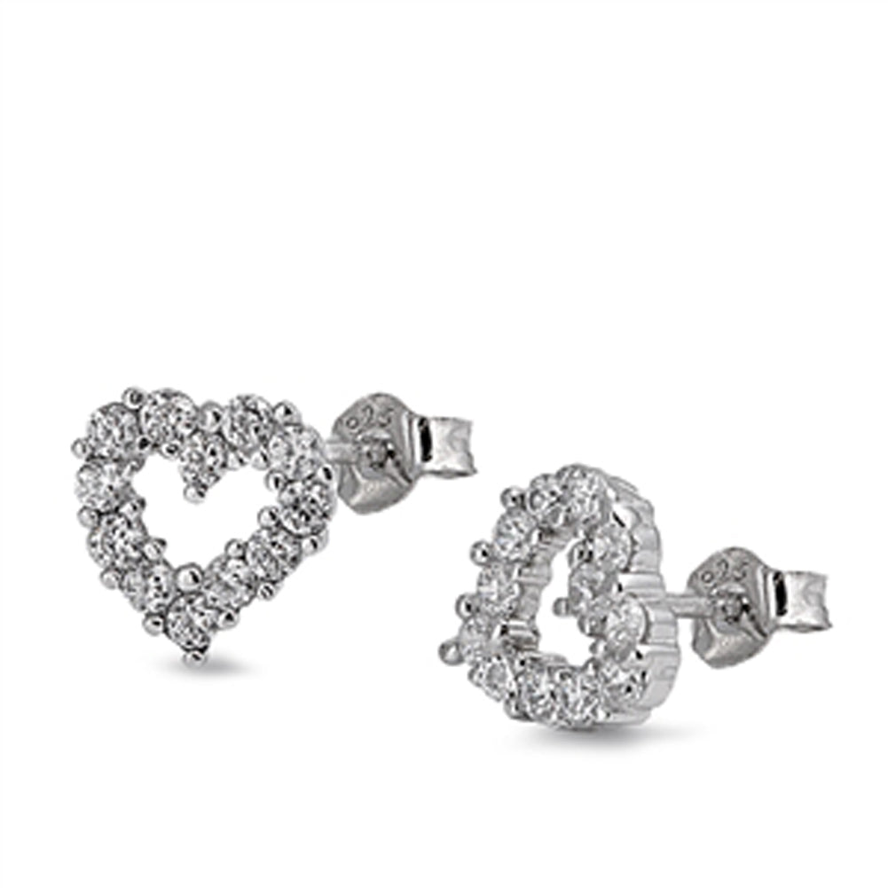Promise Studded Open Heart Love Clear Simulated CZ .925 Sterling Silver Earrings