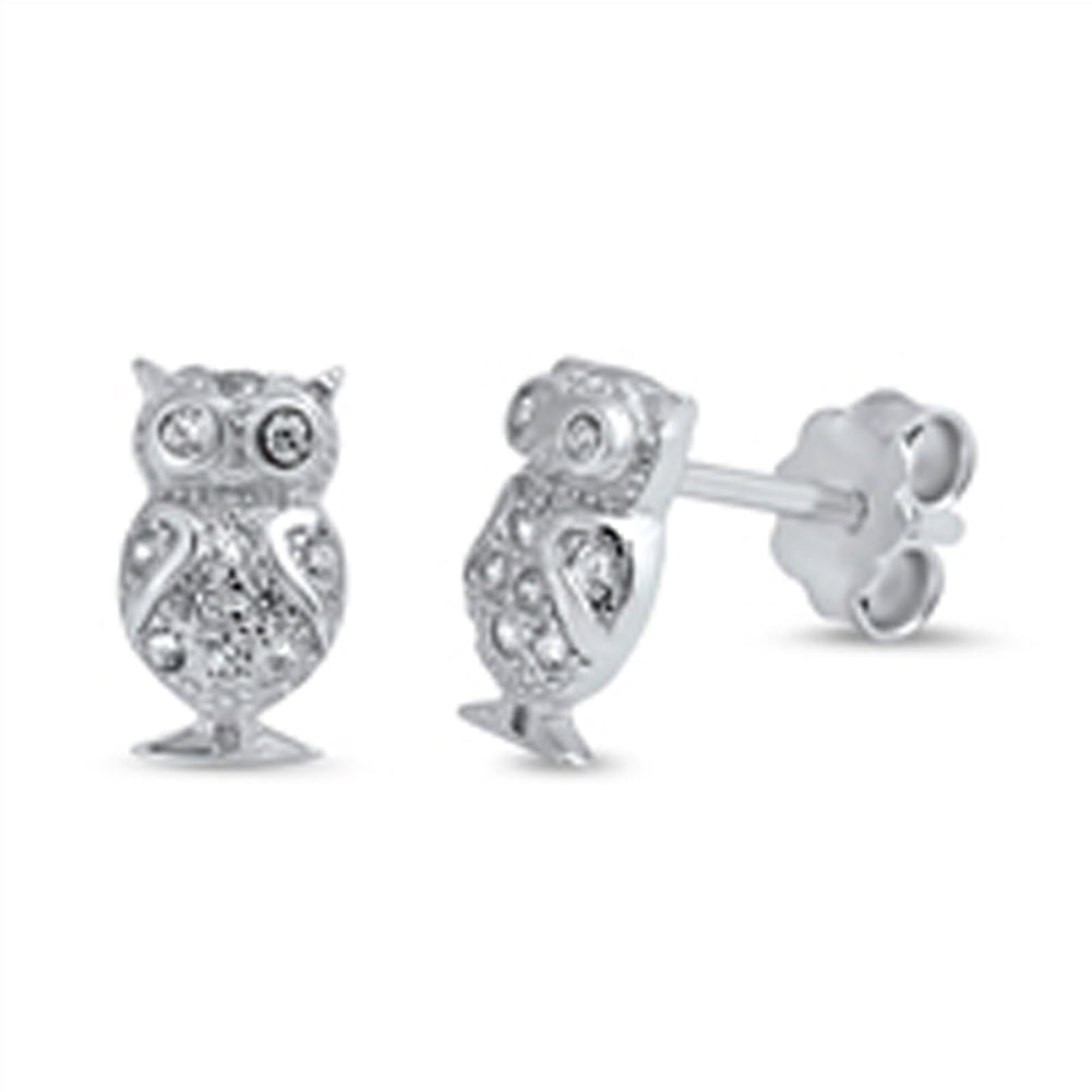 Animal Tiny Sparkly Owl Forest Clear Simulated CZ .925 Sterling Silver Earrings
