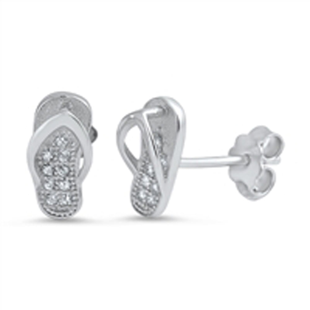 Thong Sandal Cute Studded Flip Flop Shoes Summer Vacation Clear Simulated CZ .925 Sterling Silver Earrings
