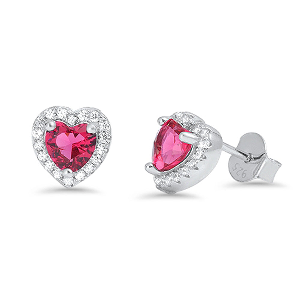 Sterling Silver Studded Heart Halo Love Valentine Earrings Ruby CZ Clear CZ 925