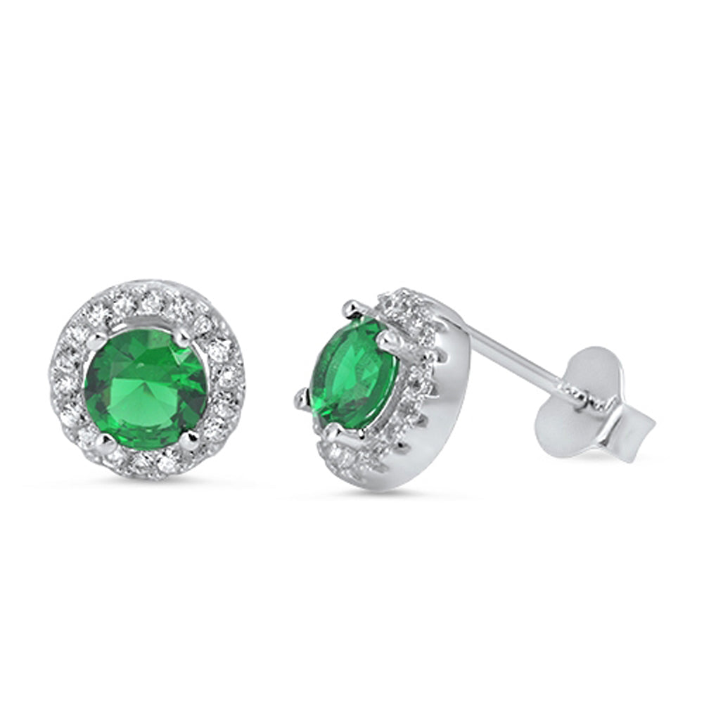Framed Studded Eternity Circle Endless Simulated Emerald Clear Simulated CZ .925 Sterling Silver Earrings