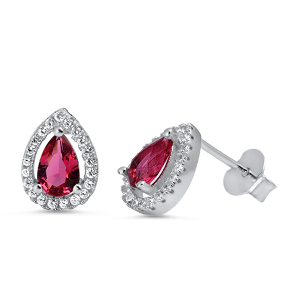 Eternity Vintage Style Teardrop Endless Simulated Ruby Clear Simulated CZ .925 Sterling Silver Earrings
