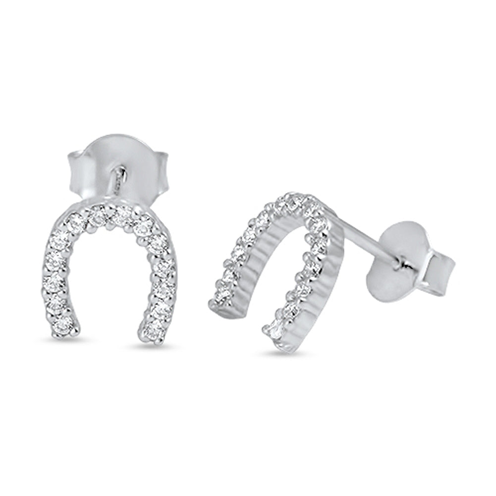Animal Studded Sparkly Horseshoe Equestrian Clear Simulated CZ .925 Sterling Silver Earrings