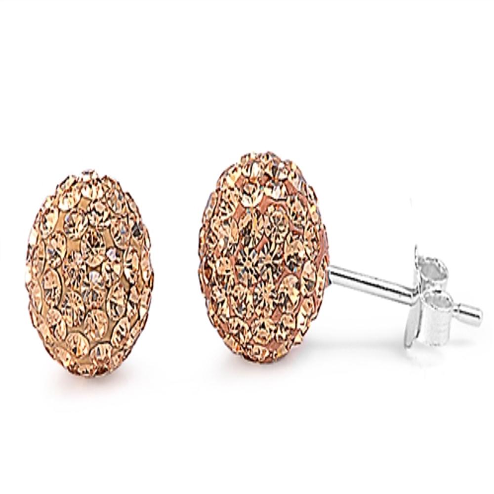 Sterling Silver Fashion Champagne Rhinestones Studded Ball Earrings 925 New