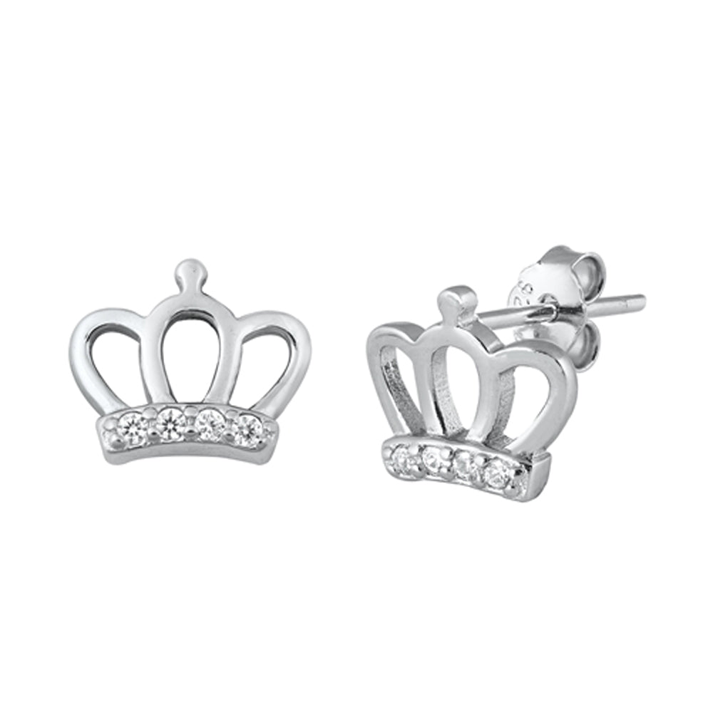 Sterling Silver Royal Crown Outline Queen Studded Earrings Clear CZ 925 New