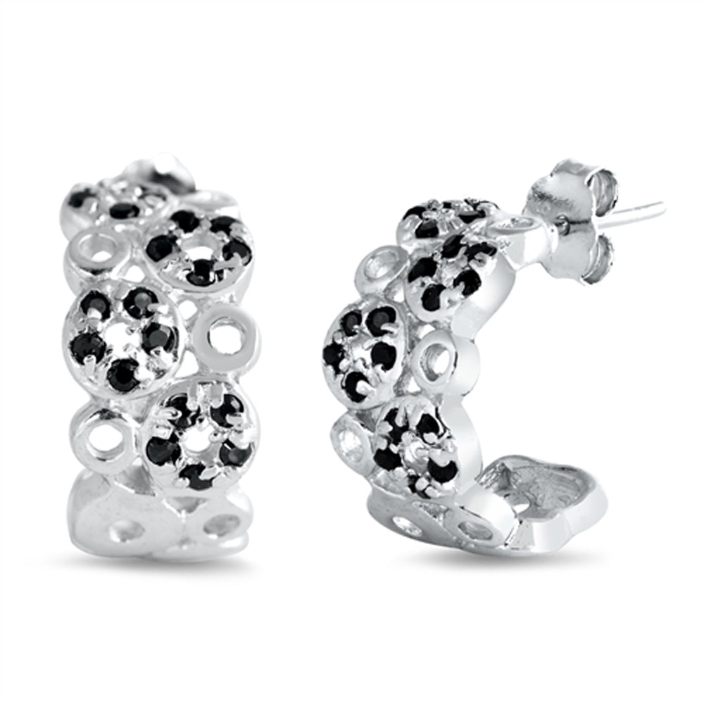 Sterling Silver Modern Studded Open Circle Elegant Classic Earrings Clear CZ 925