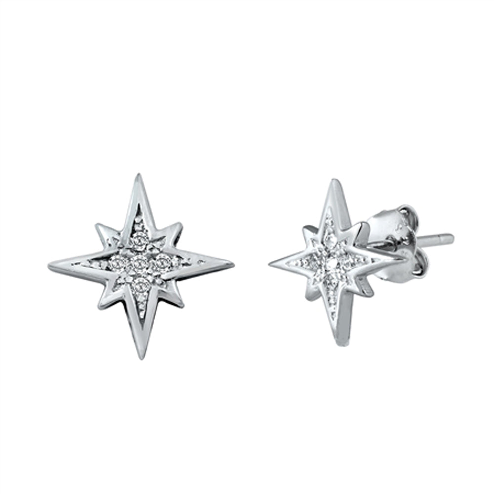 Sterling Silver Northern Star Bright Twinkle Vintage Style Sky Earrings Clear CZ