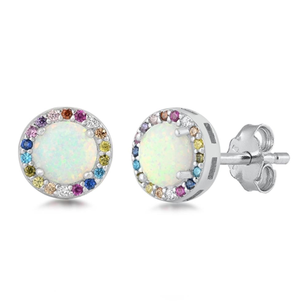 Sterling Silver Halo Rainbow Earrings White Synthetic Opal Multicolor CZ 925 New
