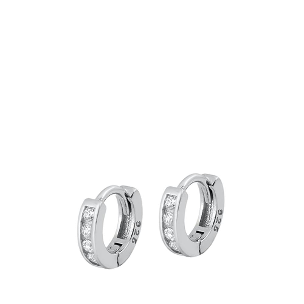 Sterling Silver Fashion Clear CZ Studded High Polished Hoop Earrings 925 New