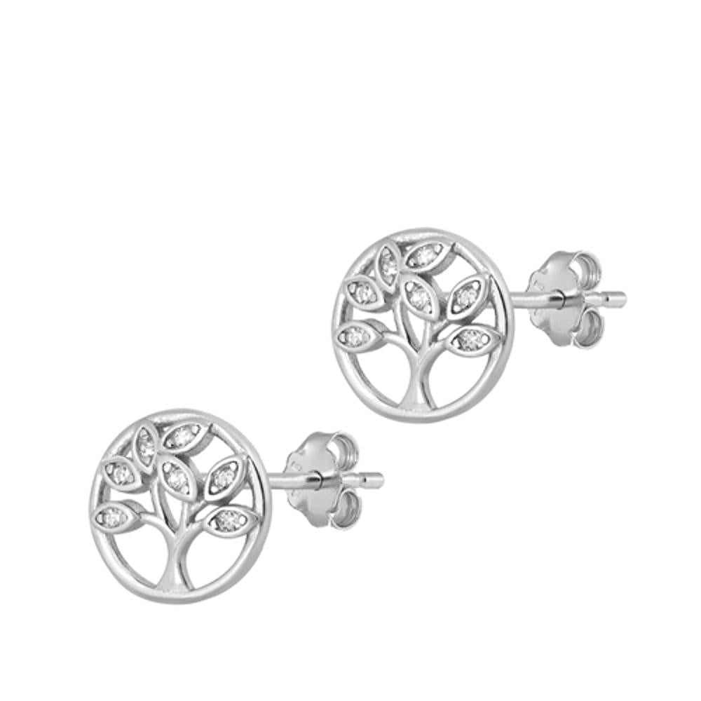 Sterling Silver Classic Round Circle Tree of Life Clear CZ Earrings 925 New