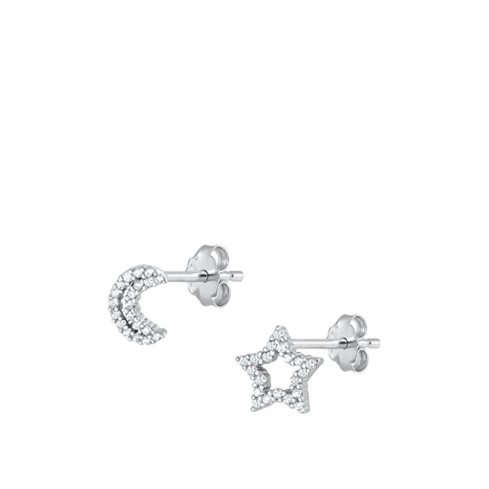 Trendy Star & Moon Clear CZ Stud Mix & Match Earrings Sterling Silver 925 New
