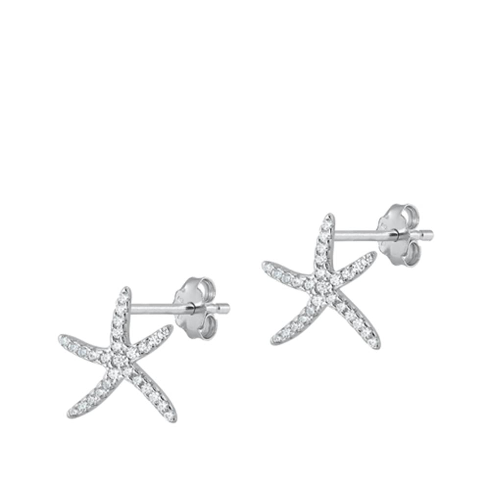 Sterling Silver Fashion Clear CZ Starfish Sea Star Ocean Beach Earrings 925 New