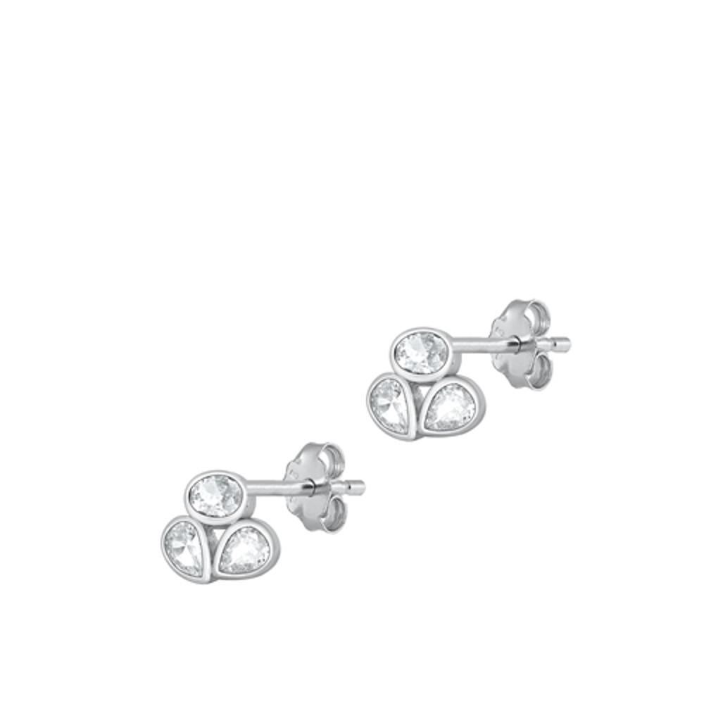 Sterling Silver Beautiful High Polished Clear CZ Unique Fashion Earrings 925 New