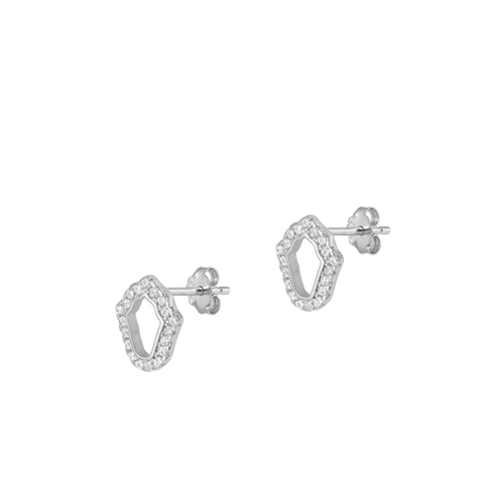 Sterling Silver Classic Clear CZ Hamsa Stud High Polished Earrings .925 New