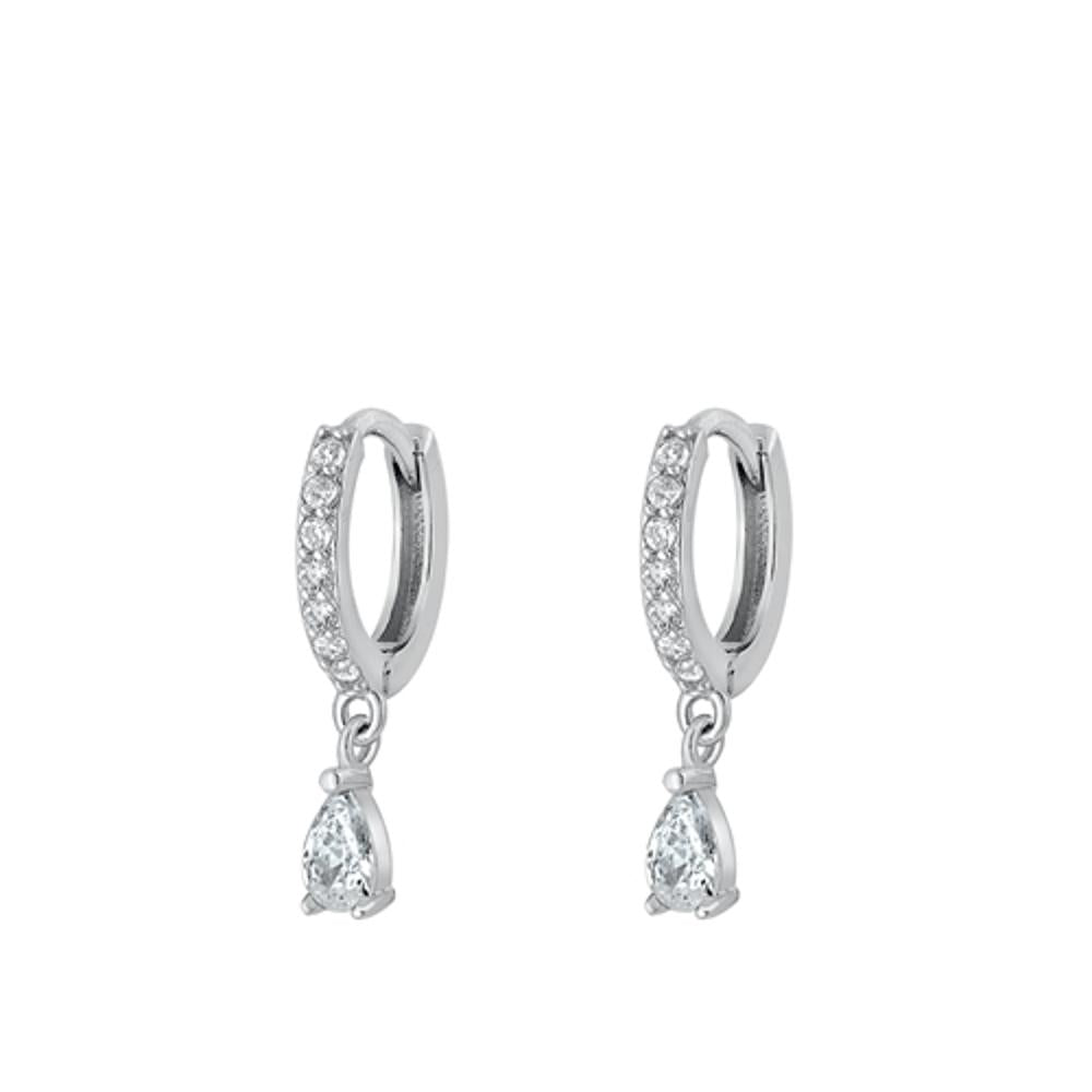 Sterling Silver High Polished Clear CZ Finished Hoop Earrings 925 New