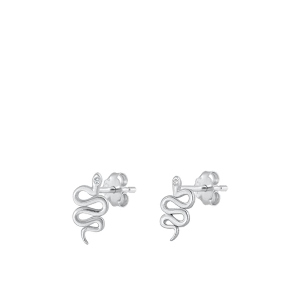 Sterling Silver Unique Cute High Polished Snake Stud Earrings 925 New