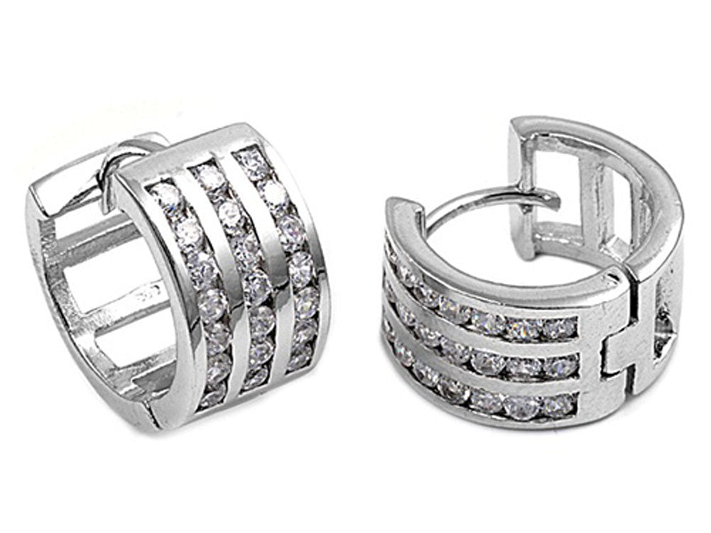 Huggie Hoop Earrings Clear Simulated CZ .925 Sterling Silver