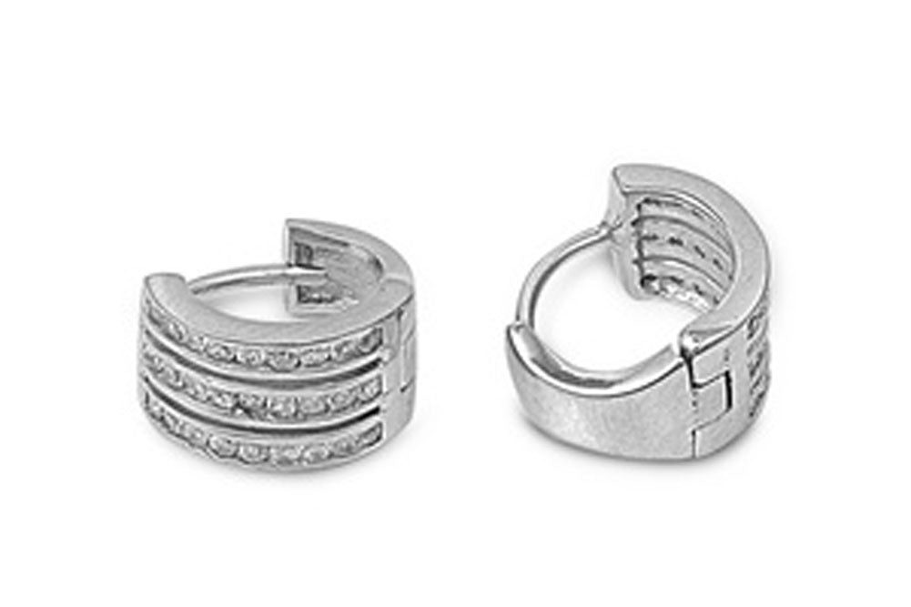 Huggie Hoop Earrings Clear Simulated CZ .925 Sterling Silver