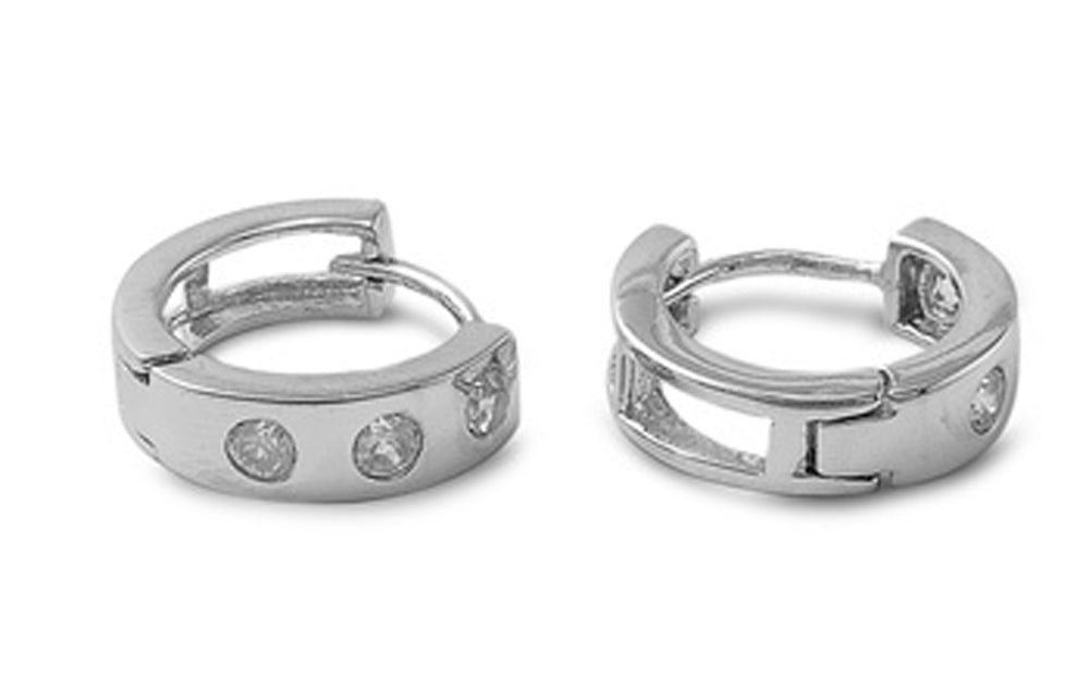 Sterling Silver High Polish Hoop Studded Huggie Cuff Classic Earrings Clear CZ