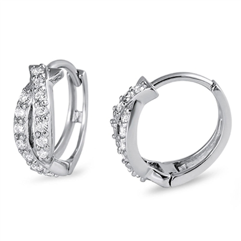 Knot Huggie Hoop Earrings Clear Simulated CZ .925 Sterling Silver