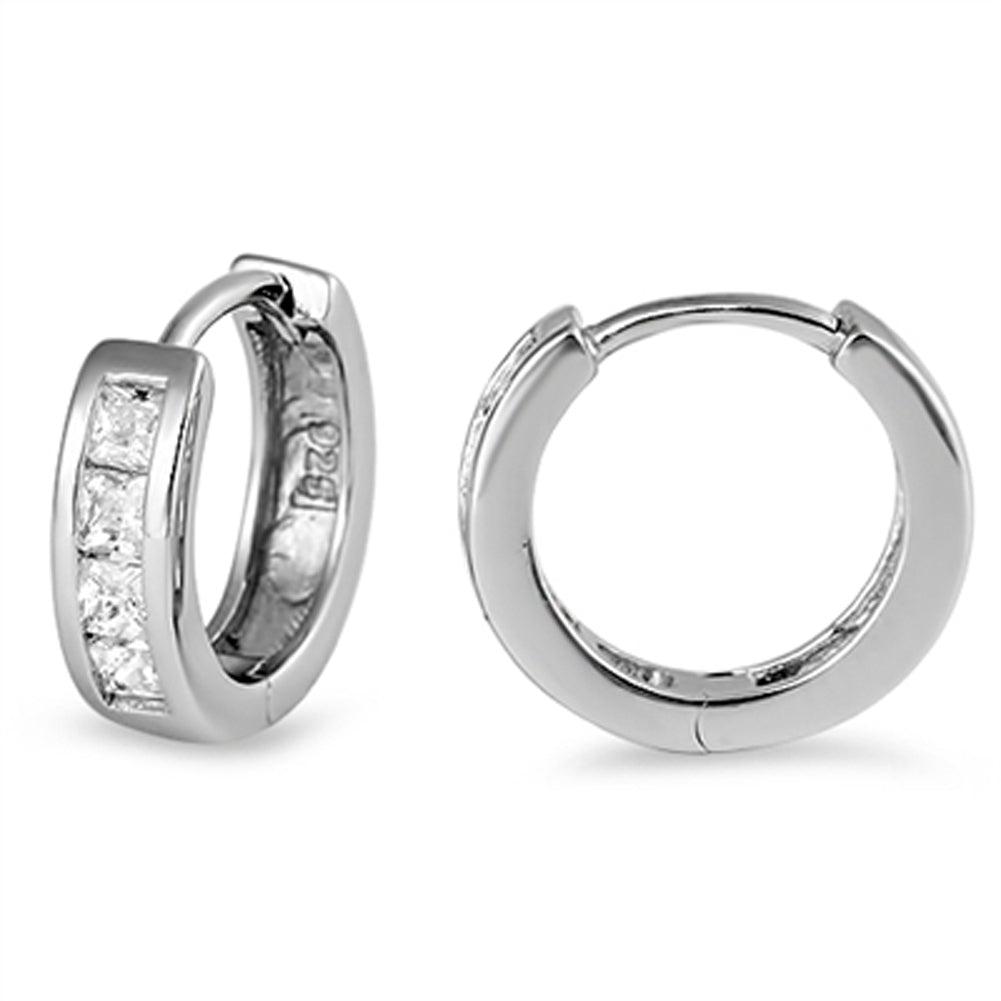 Chunky Studded Huggie Sparkly Clear Simulated CZ .925 Sterling Silver Huggie Hoop Earrings