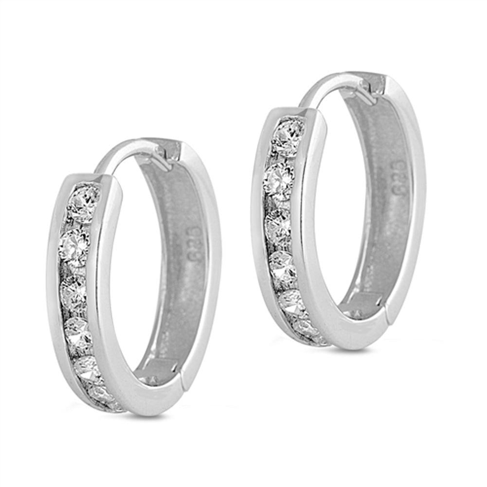 Elegant Studded Hoop Classic Clear Simulated CZ .925 Sterling Silver Simple Huggie Hoop Earrings