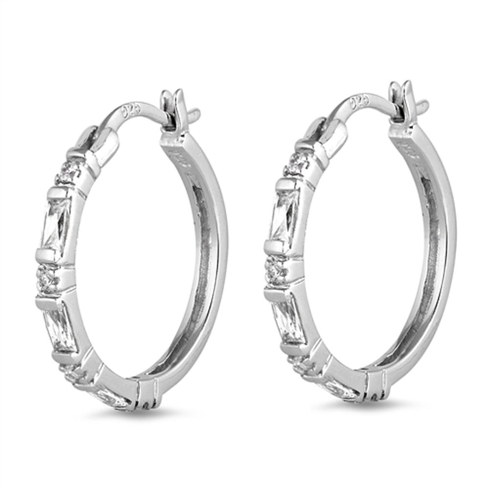 Sterling Silver Simple Hoop Studded Modern Classic Lever Back Earrings Clear CZ