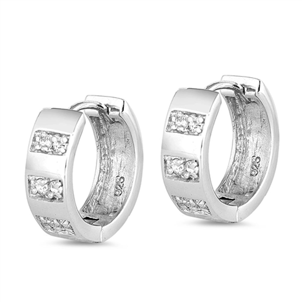Sterling Silver Simple Hoop Elegant Geometric Modern Stripe Earrings Clear CZ