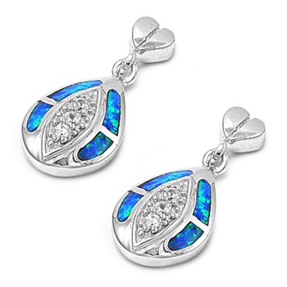 Funky Stacked Teardrop Heart Sparkly Blue Simulated Opal Clear Simulated CZ .925 Sterling Silver Earrings