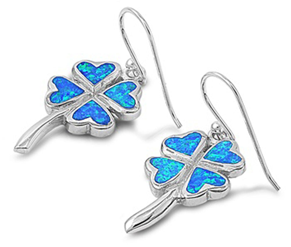Heart Clover Earrings Blue Simulated Opal .925 Sterling Silver