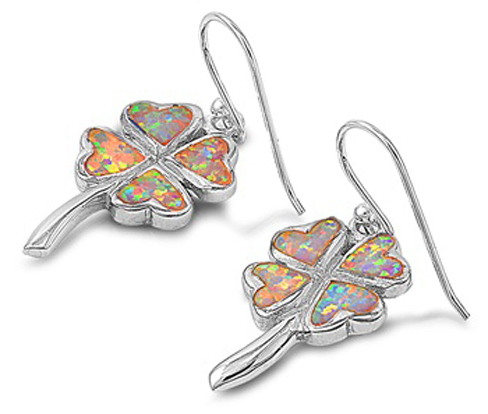 Heart Clover Earrings White Simulated Opal .925 Sterling Silver